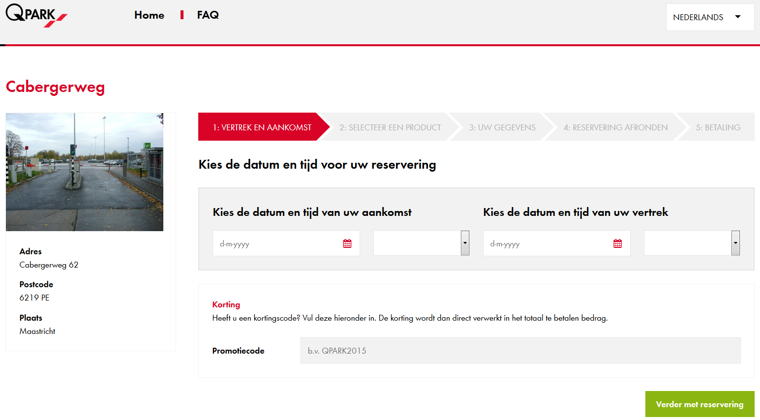 Een goed voorbeeld van de manier waarop we dit vormgeven zien we in Maastricht. Sinds december 2014 kunnen bezoekers van Maastricht online een parkeerplek reserveren bij parkeerterrein Q-Park Cabergerweg. Een bevestigingsmail met QR-code geeft rechtstreeks vanaf de smartphone of geprint toegang tot deze parkeerfaciliteit. Op deze manier kunnen klanten een trip naar Maastricht tot in de puntjes plannen en hoeven zij niet meer langs de betaalautomaat. Deze nieuwe mogelijkheid is het resultaat van de samenwerking tussen Maastricht Bereikbaar en Q-Park, onderdeel van het landelijke programma Beter Benutten, bedoeld om de bereikbaarheid van de stad te verbeteren. In 2015 gaan we dit ook in andere Q-Park landen aanbieden.